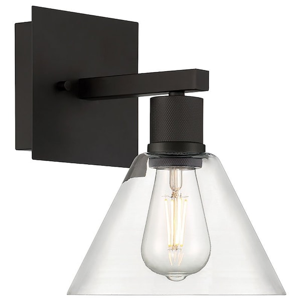 Port Nine Martini, Martini LED Wall Sconce, Matte Black Finish, Clear Glass