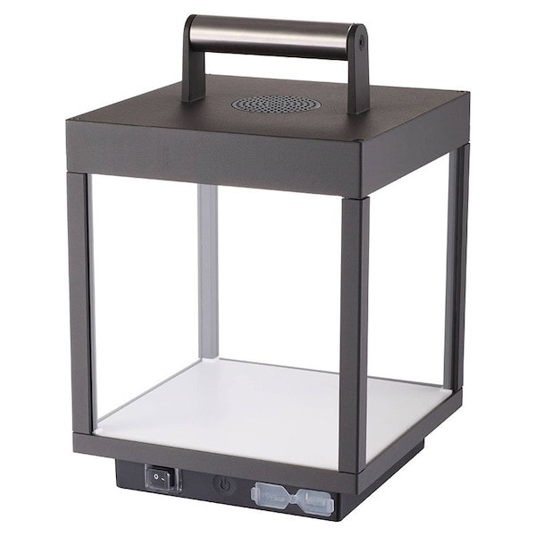 Reveal, Dual Voltage Portable LED Lantern with Bluetooth Speaker, Black Finish, Clear Glass (Discontinued)