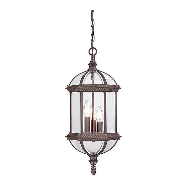 Hanging Light, Burled Walnut, 3-Light, Height: 22-1/4"