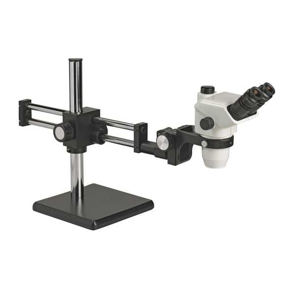 Microscope, Eyepiece Type Trinocular, Microscope Type Stereo, Stand Type Single Arm Boom, Light Source LED, Optical Field of View 22 mm, Optical Magnification 0.67X to 4.5X, Maximum Magnification Capability 10X, Vertical Extension 14 3/8 in, Horizontal Extension 20 3/8 in, Base Dimensions 10 in x 10 in, Manufacturers Warranty Length 5 yr, Working Distance 100 mm, Eyepiece Protractor Yes