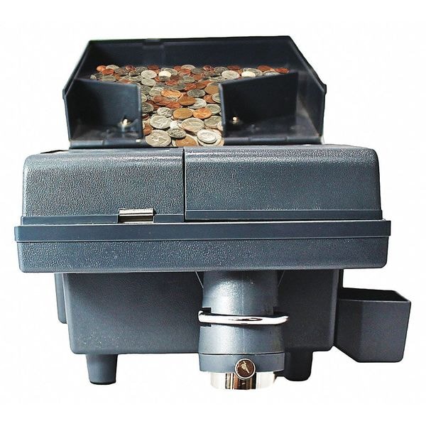 Coin Counter, Capacity 4000 Coins, Power Supply 110V AC, 60 Hz, Speed 1800 Coins/min, Material Metal, Plastic, Height 6 29/32 in, Width 9 7/64 in, Depth 10 in, Color Blue, Standards NOM Certified