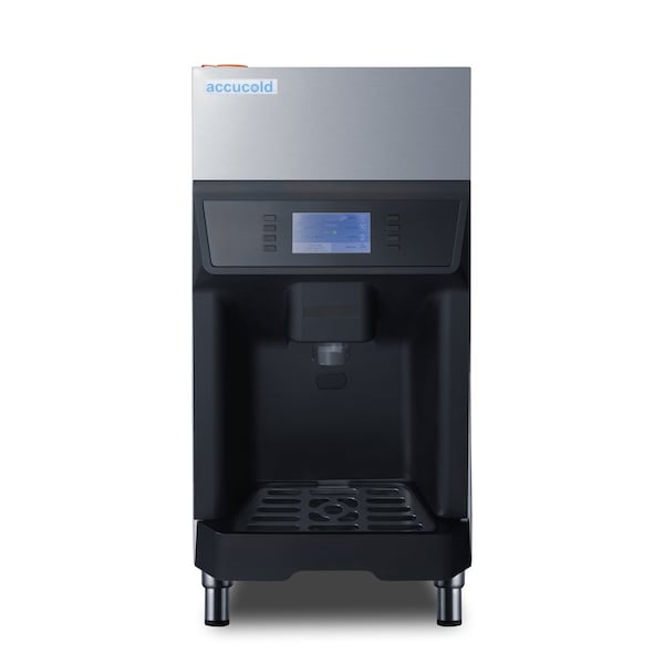 Accucold's series of commercially approved ice machines and countertop ice makers bring powerful performance, user-friendly convenience, and professional style to commercial settings. The AIWD220FLTR is an ENERGY STAR certified countertop ice + water dispenser that is ETL-S listed to NSF-12 standards. This unit can produce up to 220 lbs. of nugget ice daily, and the interior can store up to 6.2 lbs. This ice + water dispenser features three easy-to-use functions - ice, water, or ice + water, which provide expanded functionality, while the illuminated display and digital controls ensure easy access and control of the unit. This unit ships with a filter kit. Adjustable legs offer flexible height options, while the stainless steel front provides a professional look. The removable tray and sealed back make for easy cleaning. This unit comes equipped with UV lighting in the dispenser and is top-vented. With its countertop footprint and large production output, the AIWD220FLTR is the perfect unit for hospital waiting areas, break rooms, or similar settings looking for a water and ice dispenser that is attractive, efficient, and user-friendly. Explore all of Accucold's commercial ice machines and icemakers at accucold.com.