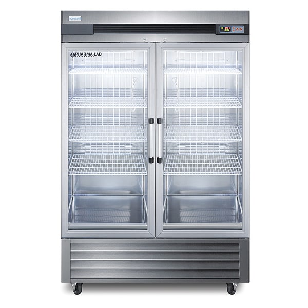 Refrigerator, Application - Laboratory Refrigerator/Freezer General Purpose, Laboratory Refrigerator/Freezer Style Upright, Refrigerator Capacity (Cu.-Ft.) 49 cu ft, Refrigerator Temperature Range (C) 2 Degrees to 10 Degrees , Overall Depth 31 in, Overall Height 7 ft, Overall Width 4 5/8 ft, Defrost Automatic, Refrigerator Temperature Range (F) 36 Degrees to 50 Degrees , Amps 7.5, Hz 60, Voltage 115V AC, Color Silver, Door Hinge Left and Right, Door Type Swing Glass, Door Material Glass