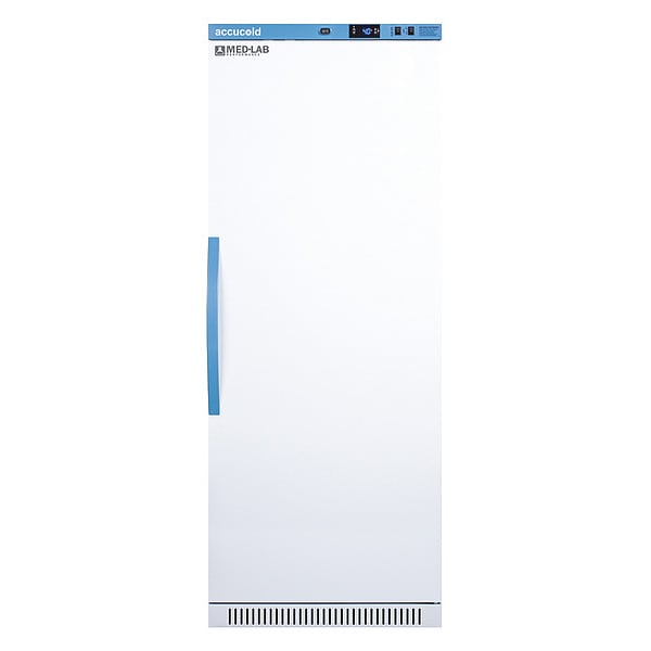 Refrigerator, Application - Laboratory Refrigerator/Freezer General Purpose, Laboratory Refrigerator/Freezer Style Upright, Refrigerator Capacity (Cu.-Ft.) 12 cu ft, Refrigerator Temperature Range (C) 2 Degrees to 10 Degrees , Overall Depth 24 3/8 in, Overall Height 5 ft, Overall Width 23 3/8 in, Defrost Automatic, Refrigerator Temperature Range (F) 36 Degrees to 50 Degrees , Amps 1.4, Hz 60, Voltage 115V AC, Color White, Door Hinge Right, Door Type Swing Solid, Door Material Solid