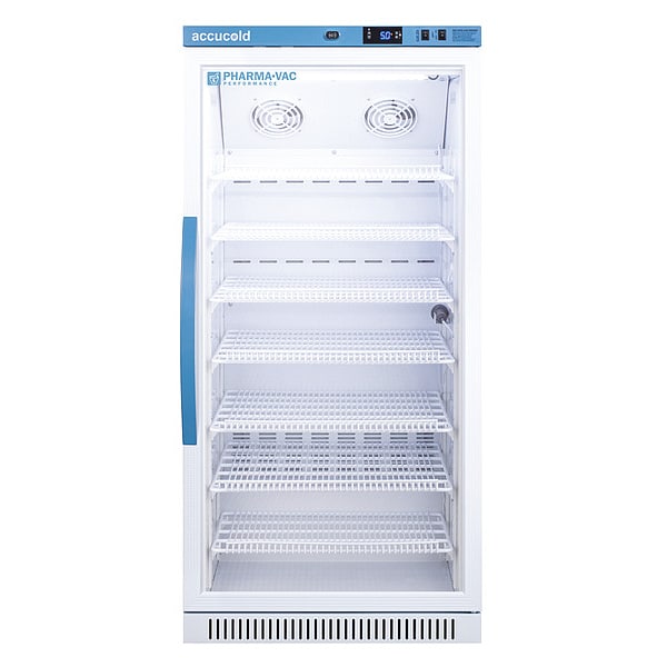 Refrigerator, Application - Laboratory Refrigerator/Freezer Pharmacy, Laboratory Refrigerator/Freezer Style Upright, Refrigerator Capacity (Cu.-Ft.) 18 cu ft, Refrigerator Temperature Range (C) 2 Degrees to 8 Degrees , Overall Depth 24 3/8 in, Overall Height 4 1/4 ft, Overall Width 23 3/8 in, Defrost Automatic, Refrigerator Temperature Range (F) 36 Degrees to 46 Degrees , Amps 1.4, Hz 60, Voltage 115V AC, Color White, Door Hinge Right, Door Type Swing Glass, Door Material Glass