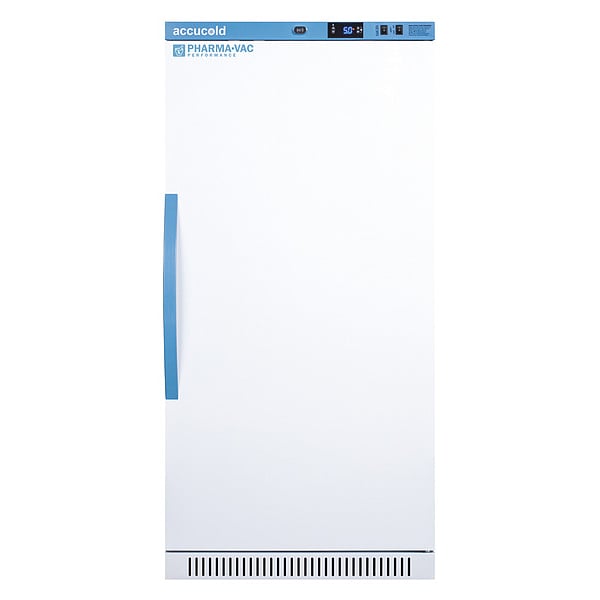 Refrigerator, Application - Laboratory Refrigerator/Freezer Pharmacy, Laboratory Refrigerator/Freezer Style Upright, Refrigerator Capacity (Cu.-Ft.) 8 cu ft, Refrigerator Temperature Range (C) 2 Degrees to 8 Degrees , Overall Depth 24 3/8 in, Overall Height 4 1/4 ft, Overall Width 23 3/8 in, Defrost Automatic, Refrigerator Temperature Range (F) 36 Degrees to 46 Degrees , Amps 1.4, Hz 60, Voltage 115V AC, Color White, Door Hinge Right, Door Type Swing Solid, Door Material Solid, Number of Doors 1