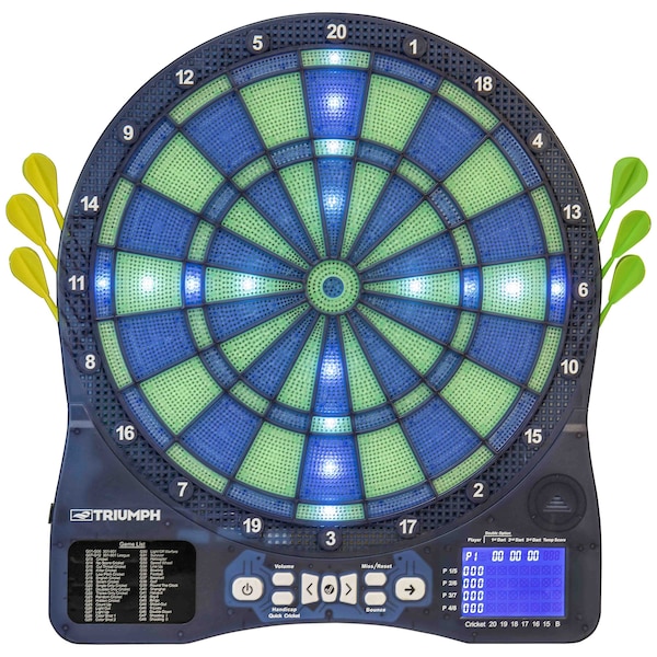 Enjoy endless darting fun with this 13.5'' recreational-sized dartboard, perfect for home or apartment play. With 48 dart games available, you can engage in exciting matches with up to 8 players simultaneously. The vibrant LED lights create an immersive play experience, adding a touch of excitement to each throw. Adjust the volume to suit your preference, whether you prefer quiet solo play or party-level fun. The large electronic scoring display conveniently tracks scores for up to 4 players, ensuring everyone stays engaged in the game. Thanks to the bounce-out detection feature, you can easily track and count darts that fall out after striking the board. The set includes 6 soft tip darts and an AC adapter, providing everything you need to start playing right away.