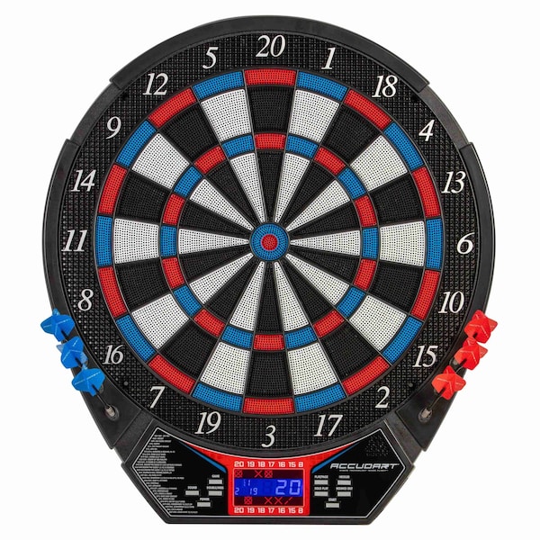 Elevate your darting experience with our ROGUE electronic dartboard, offering 90 unique game variations across 29 different game modes for a fresh play experience every time. The easy-read display features cricket scoring marks and a multicolored backlight, ensuring optimal visibility for all scoring. Enjoy challenging gameplay with five different skill level computer opponents through our virtual opponent feature. For added immersion, the heckler feature provides interactive taunting and sound effects. Our 15.5'' tournament target area is perfect for official soft tip gameplay. The set includes built-in dart holders for six darts, complete with darts for immediate play.