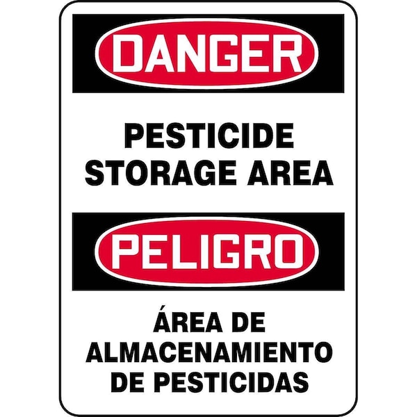 Make sure your employees and visitors have access to critical safety information with this bilingual - English and Spanish - Accuform Sign®. Sign message - English: Danger Pesticide Storage Area; Spanish: Peligro Area De Almacenamiento De Pesticidas. White/Black/Red. Sign types: Adhesive Vinyl self-sticks to most flat, clean surfaces for indoor or short-term outdoor use. Flexible, 4-mil-thick vinyl has acrylic adhesive. Non-glare surface. Signs are UV resistant for 2-4 years and have excellent moisture resistance. Effective in temperatures from -20°F to 176°F. Plastic signs are made from .055"-thick polyethylene with durability for inside or short-term outdoor use. Non-glare finish with UV resistance for 1-3 years. Effective in temperatures from -90°F to 168°F. Rounded corners have holes for easy mounting. Aluminum gives you the strength of metal without rusting in outdoor environments. Thicker, .040" aluminum includes UV-stable liquid Duck Armor™ coating for increased durability and UV resistance for 5 years. Duck Armor™ is perfect for indoor and outdoor use, prevents fading, and resists chemicals, abuse and graffiti. Service temperature range of -40°F to 250°F. Rounded corners have holes for easy mounting.