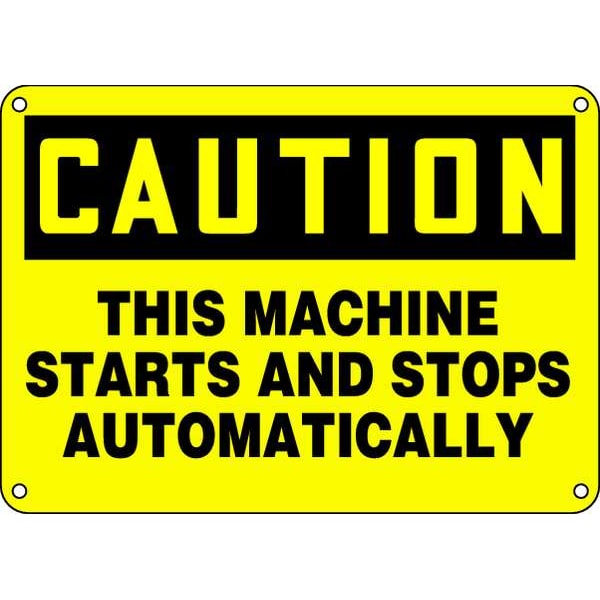 Caution Sign, Sign Subject Matter Machine and Operational, Height 10 In., Width 14 In., Sign Material Plastic, Header Caution, Legend This Machine Starts And Stops Automatically, Printed Language English, Sign Shape Rectangle
