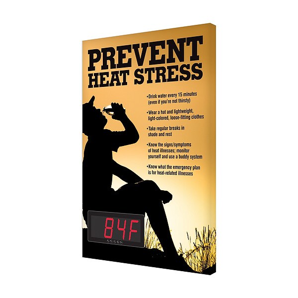 Heat Stress Safety Thermometer Sign, Rectangle, Number of Printed Sides 1, English, Sign Format Not Applicable, Sign Legend PREVENT HEAT STRESS
