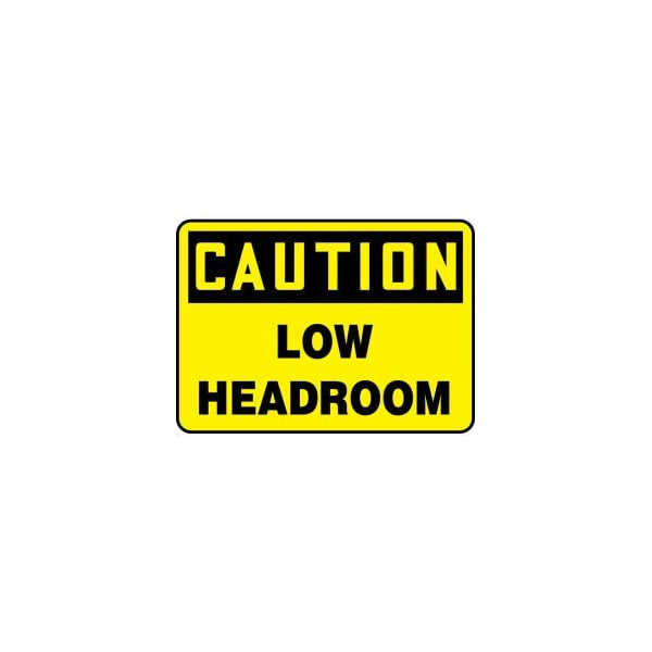 Safety sign, caution low headroom, adhesive vinyl, 10 x 14 features: signs identify and indicate potential, type, and degree of hazards that may lead to accidental injury or property damage. comply in accordance with osha 29 cfr 1910.145 and ansi z535 requirements printed matte surface has permanent acrylic adhesive back flexible vinyl can be applied to curved or uneven surfaces moisture resistant for a various light-duty indoor and sheltered outdoor marking needs square corners and scored back liner for quick peel-off and application