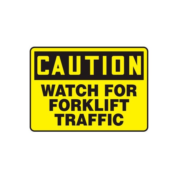 Accuform Caution Sign, Watch For Forklift Traffic, 10inW x 7inH, Plastic