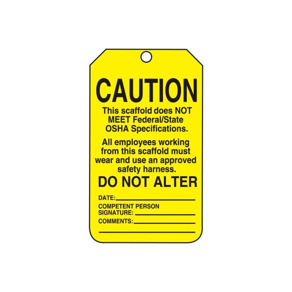 Accuform Caution This Scaffold Does Not Meet.Tag, RP-Plastic, 25/Pack