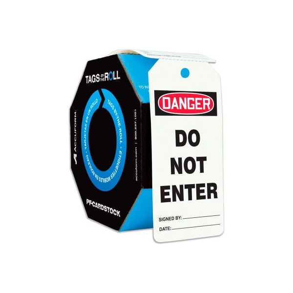 Accuform tar140 danger do not enter, pf-cardstock, 250/roll specifications: safety tags provide specifications, designs, applications, and uses of accident prevention tags by-the-roll allows you to keep a large quantity of safety tags available features a 6-5/8 x 6-5/8 x 3-5/8 eye-catching, octagon-shaped disposable cardboard dispenser which includes a 1-1/2 perforated center hole for mounting with tags housed inside for portability simply pull out the 6-1/4 x 3 tag from the box to easily tear off made from pulp-free cardstock which is more durable than traditional cardstock, and will not crack, distort, or shrink matte surface is scuff-resistant and easy to write on with pen or marker comply in accordance with osha 29 cfr 1910.145 and ansi z535 requirements