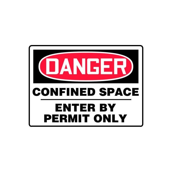 Safety sign, danger confined space enter by permit only, plastic, 7 x 10 features: signs identify and indicate potential, type, and degree of hazards that may lead to accidental injury or property damage. comply in accordance with osha 29 cfr 1910.145 and ansi z535 requirements durable plastic has slight flex that is ideal for indoor and sheltered outdoor environments printed surface has non-glare finish plastic has 50% recycled content with uv inhibitors and good impact resistance rounded corners with 3/16 mounting holes for installation