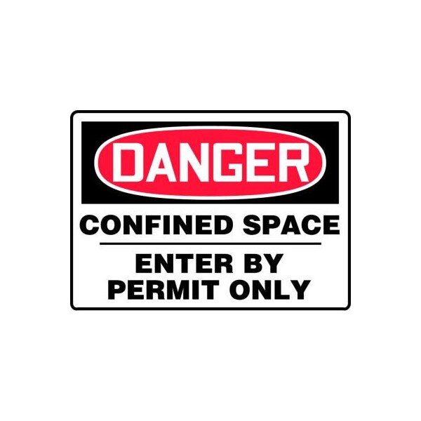 Safety sign, danger confined space enter by permit only, plastic, 10 x 14 features: signs identify and indicate potential, type, and degree of hazards that may lead to accidental injury or property damage. comply in accordance with osha 29 cfr 1910.145 and ansi z535 requirements durable plastic has slight flex that is ideal for indoor and sheltered outdoor environments printed surface has non-glare finish plastic has 50% recycled content with uv inhibitors and good impact resistance rounded corners with 3/16 mounting holes for installation