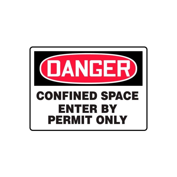 Safety sign, danger confined space enter by permit only, plastic, 10 x 14 features: signs identify and indicate potential, type, and degree of hazards that may lead to accidental injury or property damage. comply in accordance with osha 29 cfr 1910.145 and ansi z535 requirements durable plastic has slight flex that is ideal for indoor and sheltered outdoor environments printed surface has non-glare finish plastic has 50% recycled content with uv inhibitors and good impact resistance rounded corners with 3/16 mounting holes for installation