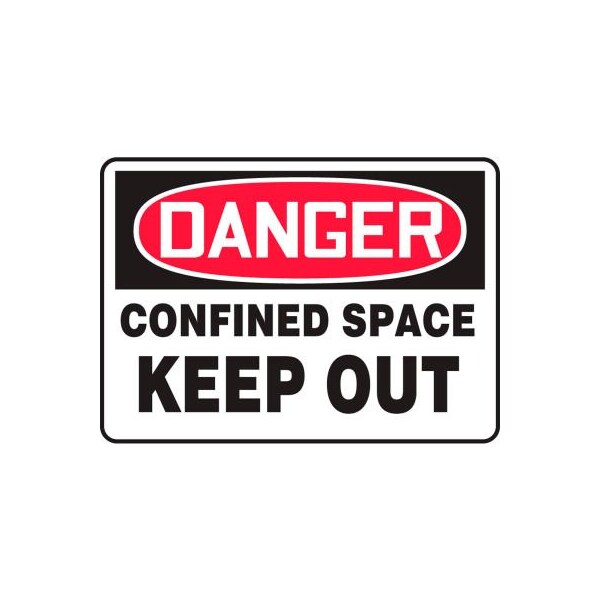 Safety sign, danger confined space keep out, aluminum, 7 x 10 features: signs identify and indicate potential, type, and degree of hazards that may lead to accidental injury or property damage. comply in accordance with osha 29 cfr 1910.145 and ansi z535 requirements thick, rigid aluminum has the strength of metal without the rust printed surface has clear uv protective overcoat to withstand splashes, washdowns, and outdoor conditions, plus abrasion and chemical resistance rounded corners and 3/16 mounting holes for installation.