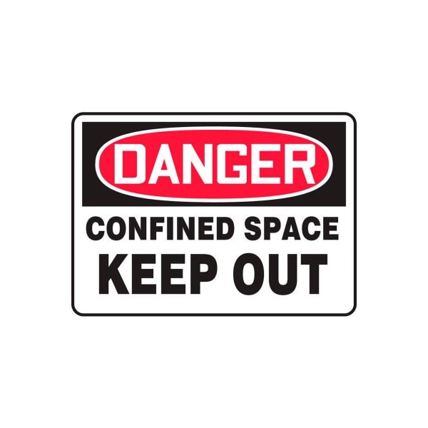 Safety sign, danger confined space keep out, aluminum, 10 x 14 features: signs identify and indicate potential, type, and degree of hazards that may lead to accidental injury or property damage. comply in accordance with osha 29 cfr 1910.145 and ansi z535 requirements thick, rigid aluminum has the strength of metal without the rust printed surface has clear uv protective overcoat to withstand splashes, washdowns, and outdoor conditions, plus abrasion and chemical resistance rounded corners and 3/16 mounting holes for installation.