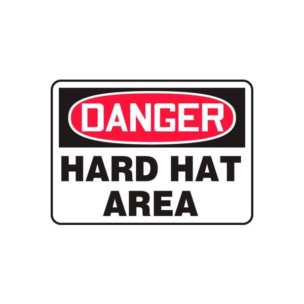 Safety sign, danger hard hat area, adhesive vinyl, 10 x 14 features: signs identify and indicate potential, type, and degree of hazards that may lead to accidental injury or property damage. comply in accordance with osha 29 cfr 1910.145 and ansi z535 requirements printed matte surface has permanent acrylic adhesive back flexible vinyl can be applied to curved or uneven surfaces moisture resistant for a various light-duty indoor and sheltered outdoor marking needs square corners and scored back liner for quick peel-off and application