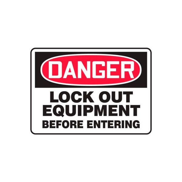 Accuform Danger Sign, Lockout Equipment Before Entering, 14inW x 10inH, Plastic