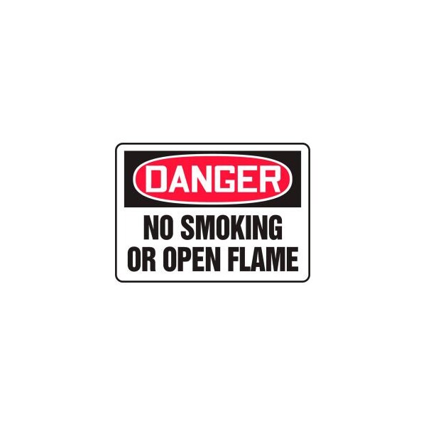 Accuform Danger Sign, No Smoking Or Open Flame, 10inW x 7inH, Plastic