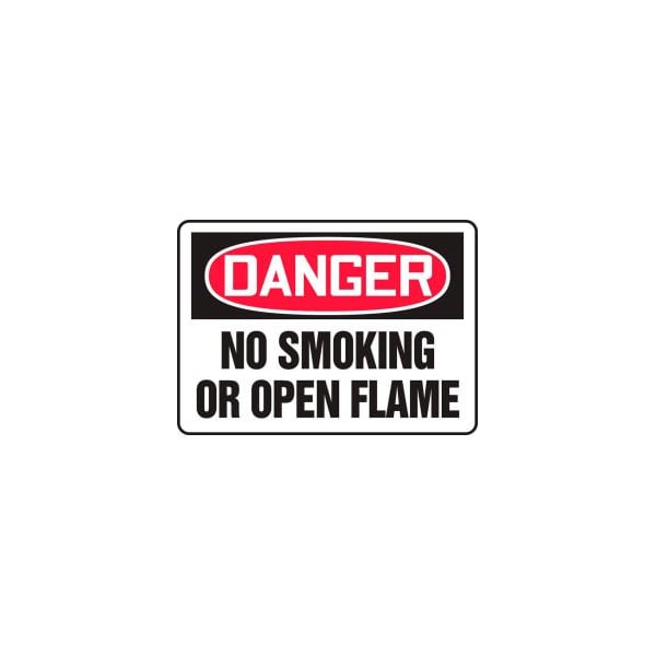 Safety sign, danger no smoking or open flame, plastic, 10 x 14 features: signs identify and indicate potential, type, and degree of hazards that may lead to accidental injury or property damage. comply in accordance with osha 29 cfr 1910.145 and ansi z535 requirements durable plastic has slight flex that is ideal for indoor and sheltered outdoor environments printed surface has non-glare finish plastic has 50% recycled content with uv inhibitors and good impact resistance rounded corners with 3/16 mounting holes for installation