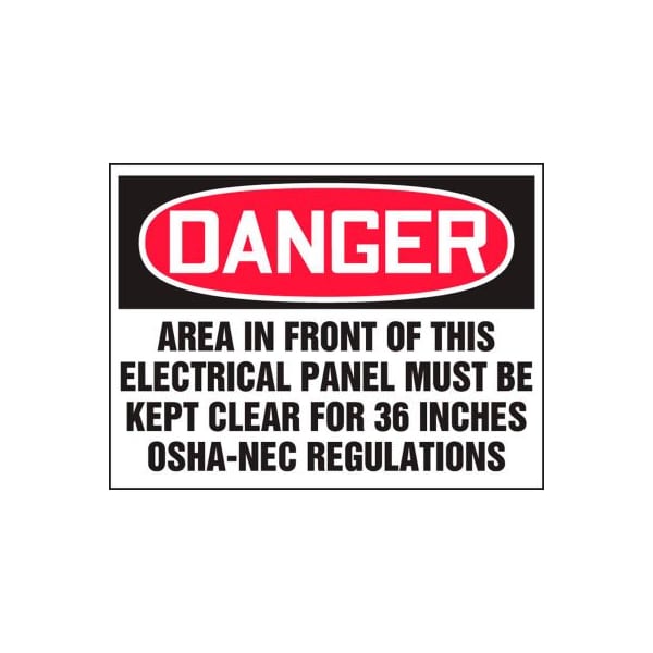 Safety label, danger area in front of this electrical panel..., dura-vinyl, 5/pk, 3-1/2" x 5" features: flexible safety labels adhere to small locations to identify and indicate potential, type, and degree of hazards that may lead to accidental injury or property damage. complies in accordance with osha 29 cfr 1910.145 and ansi z535 requirements dual-layered, 6-mil labels has clear protective outer layer resistant to moisture, splashes, abrasions, and uv fade - durable for tough environments round corners with permanent acrylic adhesive back, and scored liner back for quick peel-off to apply available each.