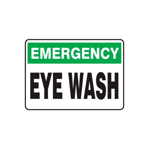 Safety sign, emergency eye wash, plastic, 10 x 14 features: signs identify and indicate potential, type, and degree of hazards that may lead to accidental injury or property damage. comply in accordance with osha 29 cfr 1910.145 and ansi z535 requirements durable plastic has slight flex that is ideal for indoor and sheltered outdoor environments printed surface has non-glare finish plastic has 50% recycled content with uv inhibitors and good impact resistance rounded corners with 3/16 mounting holes for installation