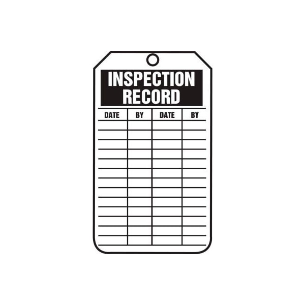 Safety tags, inspection record, 25/pk, pf-cardstock, 5 3/4 x 3 1/4 features: safety tags are to identify temporary hazard until that hazard is eliminated or hazardous operation is complete. comply in accordance with osha 29 cfr 1910.145 and ansi z535 requirements thin, pliable, and flexible 10-mil poly-based cardstock is without wood content durable tear-resistant, waterproof, and will not crack, distort, or shrink, compare to traditional paper cardstock ideal for indoor and short-term outdoor exposure easy to write on matte surface has 3/8 plain top, pull-resistant hole 25 per pack.