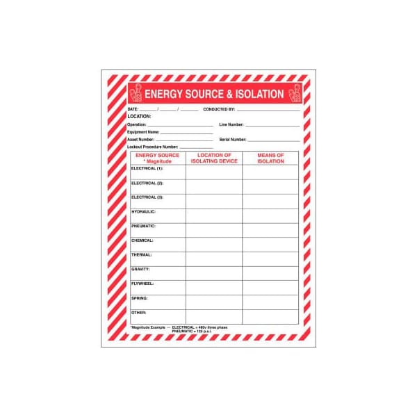 Accuform kss151 lockout procedure station additional forms, energy source & isolation, paper features: energy source & isolation forms allow you to: quickly identify and list energy source type location of lockout device identify eans of lockout assist in complying with osha 29 cfr 1910.147 25 forms per package
