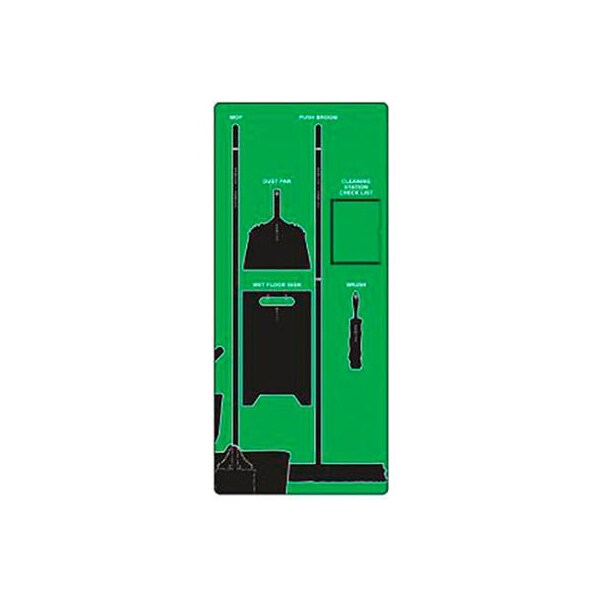 Accuform signs clean & sweep store-board, accu-shield, green on black keep tools and supplies in their designated location. clean & sweep store-boards are ideal for non-food contact or general maintenance. features: two-ply, polycarbonate plastic with industrial-strength backing resists fading, chemicals, corrosion, abrasions, cracking, and chipping non-glare reverse and subsurface print encapsulated by permanently bonded embossed poly surface making it an ideal choice for indoor or outdoor use rounded corners and 1/4" mounting holes on most sizes, will be adjusted for larger sizes service temperature: polycarbonate at -60 to 260f; backing -40 to 176f