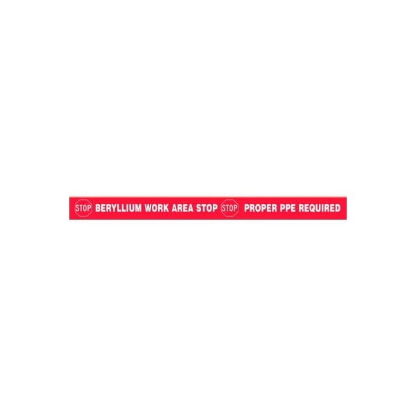 Accuform Tough-Mark Heavy-Duty Message Strip, Stop Beryllium Work Area, 4inx48in