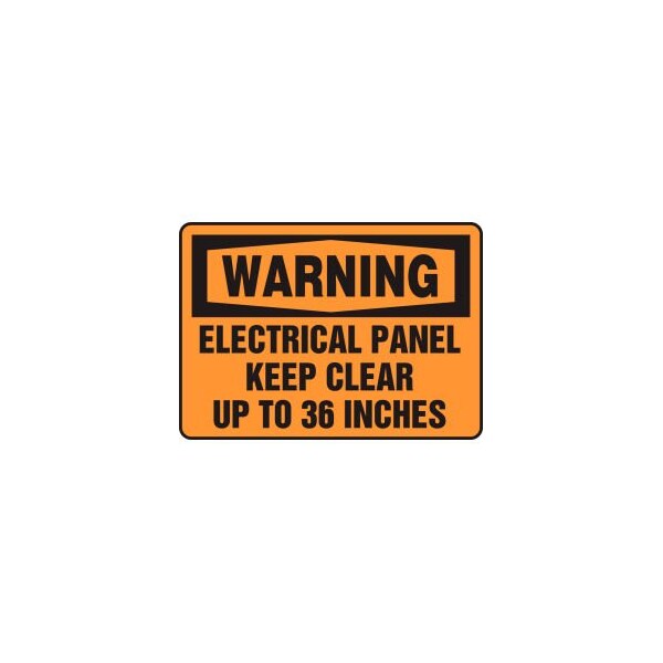 Safety sign, warning electrical panel keep clear up to 36 inches, aluminum, 7 x 10 features: signs identify and indicate potential, type, and degree of hazards that may lead to accidental injury or property damage. comply in accordance with osha 29 cfr 1910.145 and ansi z535 requirements thick, rigid aluminum has the strength of metal without the rust printed surface has clear uv protective overcoat to withstand splashes, washdowns, and outdoor conditions, plus abrasion and chemical resistance rounded corners and 3/16 mounting holes for installation.