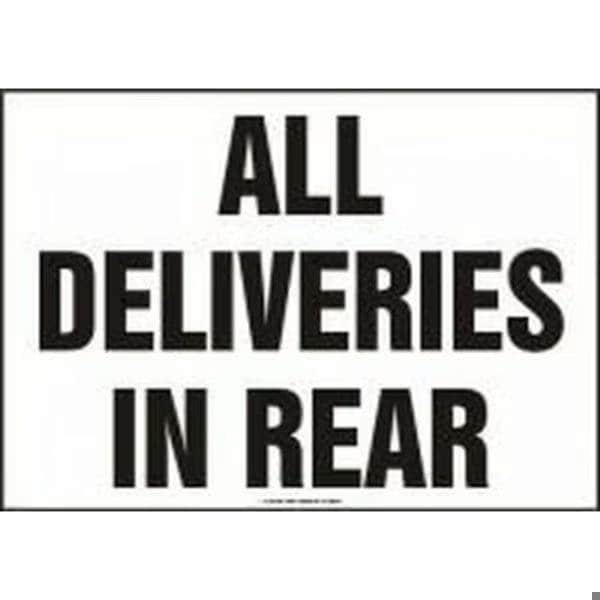 Accuform Safety Sign ALL DELIVERIES IN REAR MVHR535VS