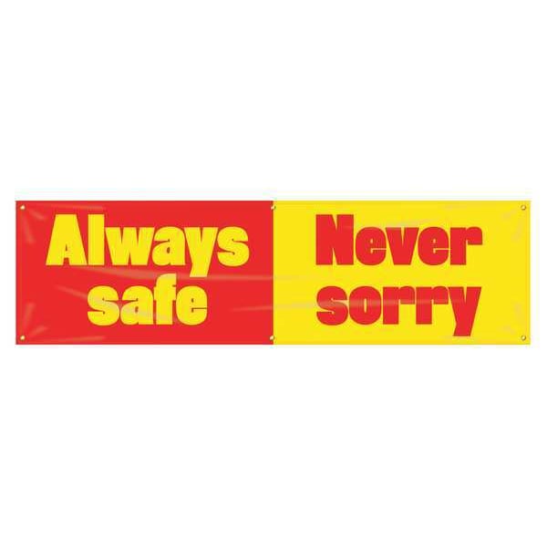 Banner, Always Safe Never Sorry, 28 in H x, 96 in W, Poly Sheeting