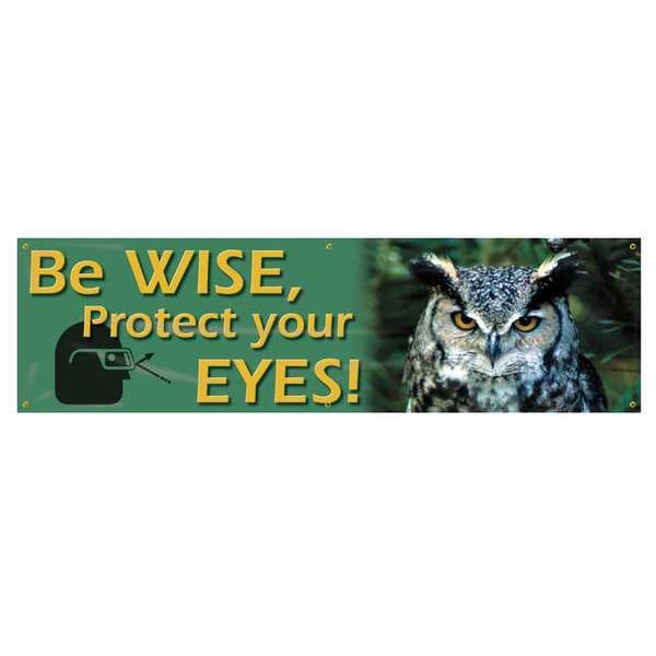 Banner, Be Wise, Protect Your Eyes!, 28 in H x, 96 in W, Poly Sheeting