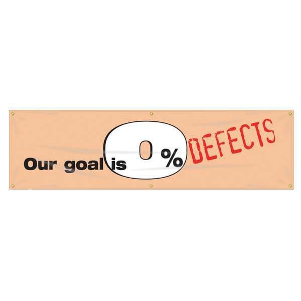 Banner, Our Goal Is 0% Defects, 28 in H x, 96 in W, Poly Sheeting
