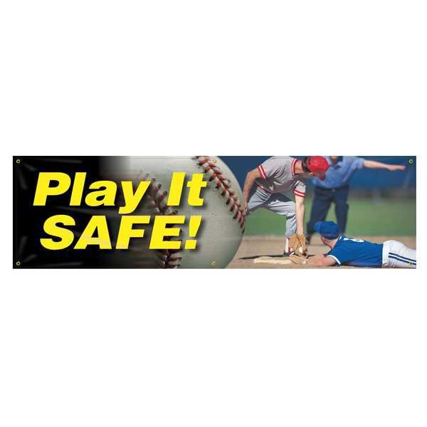 Banner, Play It Safe!, 28 in H x, 96 in W, Poly Sheeting