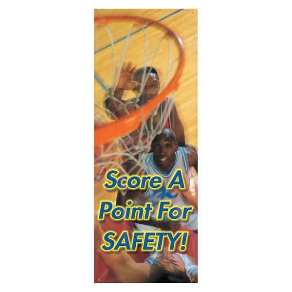 Banner, Score A Point For Safety!, 74 in H x, 28 in W, Poly Sheeting