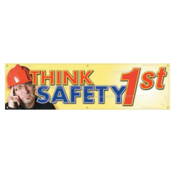 Banner, Think Safety 1St, 28 in H x, 96 in W, Poly Sheeting