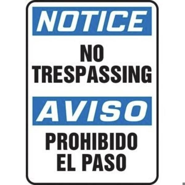 BILINGUAL OSHA NOTICE SAFETY SIGN NO
