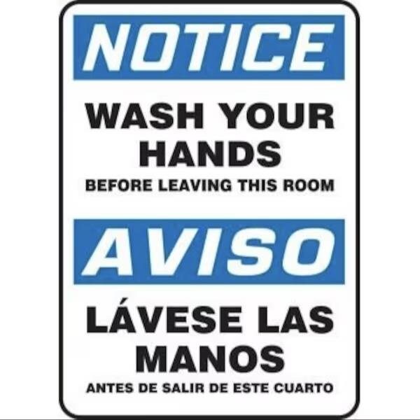 BILINGUAL OSHA NOTICE Safety Sign WASH