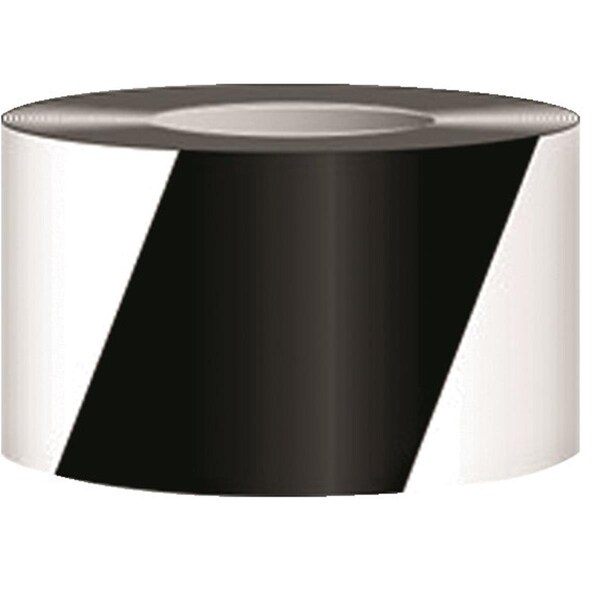 Use this pressure-sensitive, black and white pattern warning tape to indicate traffic and housekeeping markings. Durable material resists wear, fading, temperature and abrasion (better than paint). This safety warning tape easily applies to wood, concrete, metal or paint. 3"W x 36-yd roll.