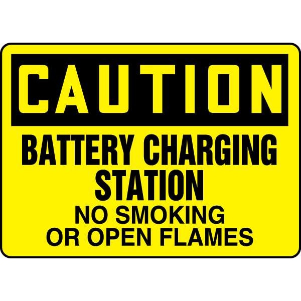 Caution No Smoking Sign, Sign Subject Matter No Smoking, Height 7 in, Width 10 in, Sign Material Vinyl, Sign Mounting Style Adhesive Surface, Header Caution, Legend Battery Charging Station No Smoking Or Open Flames, Printed Language English, Sign Shape Rectangle
