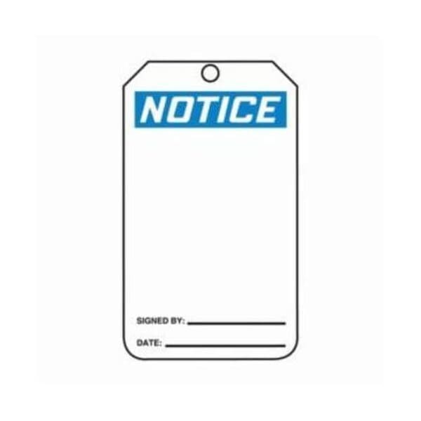 Accuform Safety Tag, NOTICE Blank Legend, 534 in Height, 314 in Width, PFCardstock, 38 in Hole, Reinforced PullProof Metal Grommet