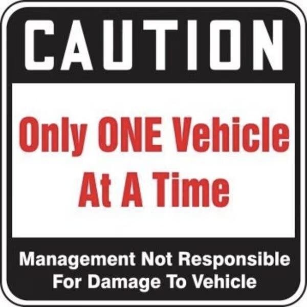 CAUTION SAFETY SIGN ONLY ONE VEHICLE