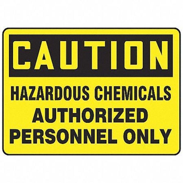 Caution Sign, Sign Subject Matter Chemical, Gas or Hazardous Materials, Height 10 in, Width 14 in, Sign Material Plastic, Header Caution, Legend Hazardous Chemicals Authorized Personnel Only, Printed Language English, Sign Shape Rectangle