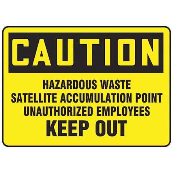 Caution Sign, Sign Subject Matter Chemical, Gas or Hazardous Materials, Height 10 in, Width 14 in, Sign Material Vinyl, Header Caution, Legend Hazardous Waste Satellite Accumulation Point Unauthorized Employees Keep Out, Printed Language English, Sign Shape Rectangle